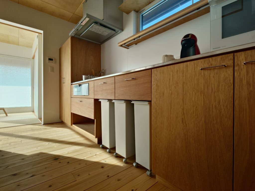 造作キッチンのシンク下スペースにゴミ置き場を造るのも良いと思います。