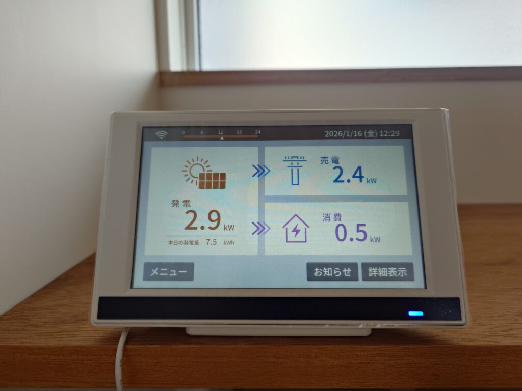 日中、電気代を気にせずエアコンを使えるので、エアコン1台で家中の冷暖房を賄う(24時間自動運転点けっぱなしの)モデルハウスにとっては必要不可欠な存在です。