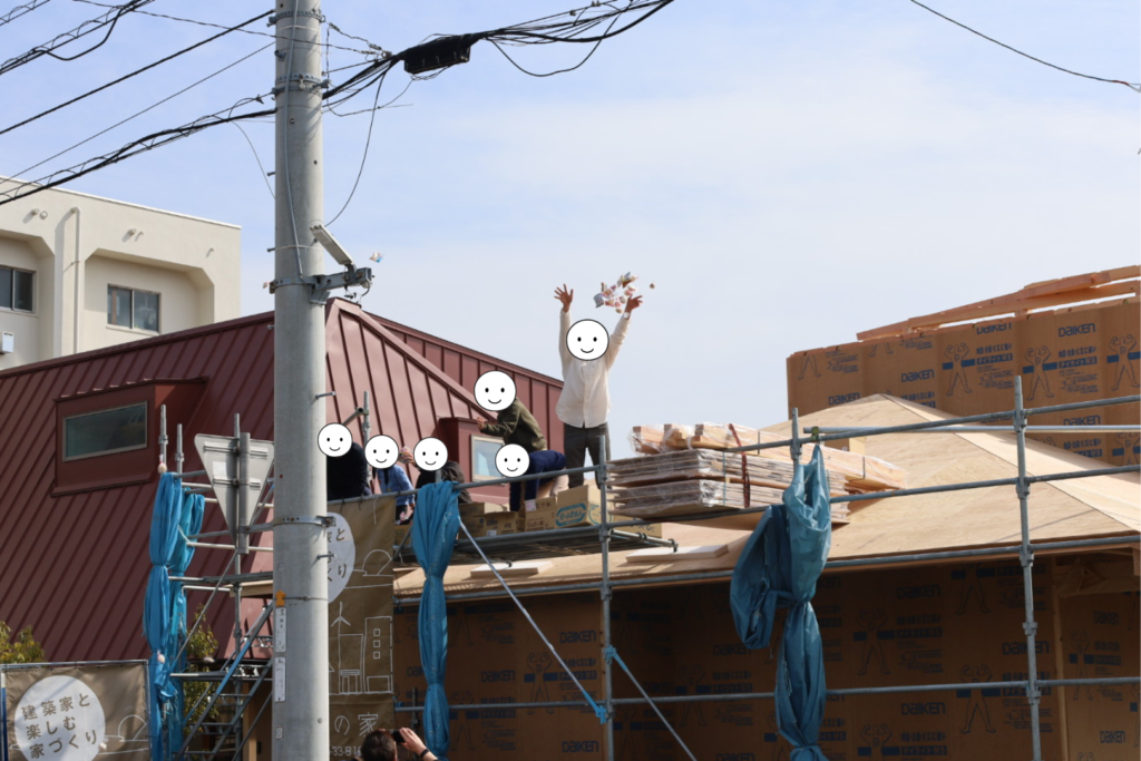 先日、晴天のもとS様邸の上棟式と餅まきを執り行いました。
